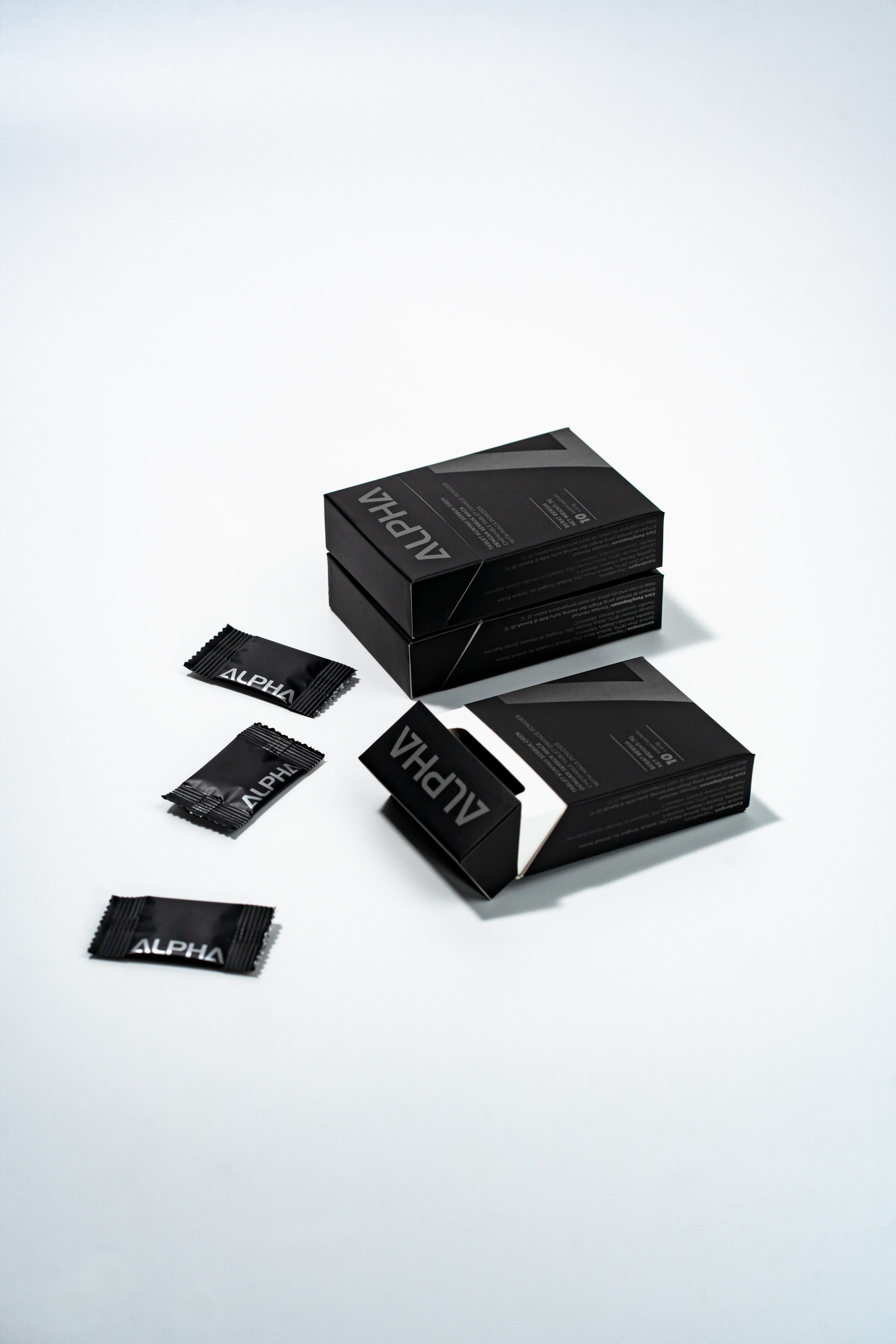 Simply remove a sachet from the Alpha: Male Booster Tear it open, pop the chewable tablet into your mouth, and start chewing.